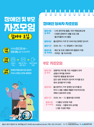 (울산장애인부모회) 2026년 장애인당사자 자조모임 및 부모자조모임 모집 안내
