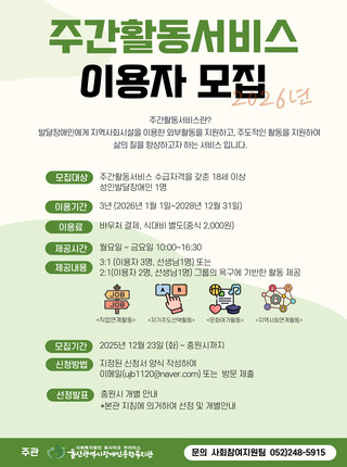 (울산광역시장애인종합복지관) 주간활동서비스 이용...